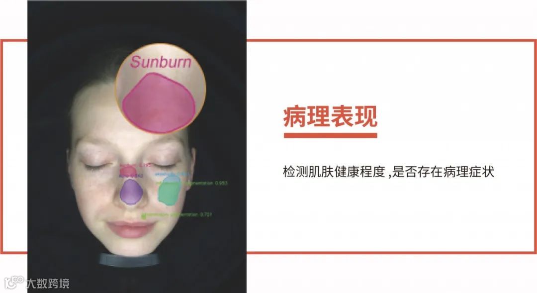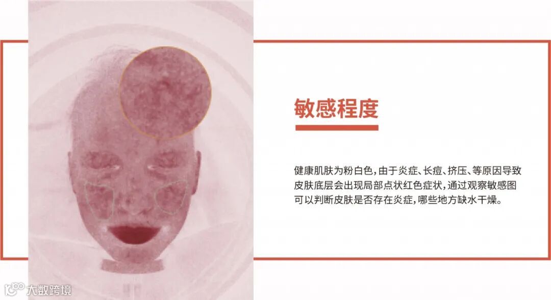 识别面部敏感区域以及面积,并通过极化图、红图进行具象化体现