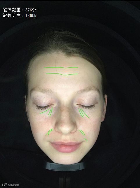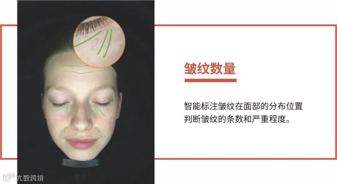 识别面部皱纹以及数量、长度,并通过纹理图、皱纹年轻/老化模拟图进行具象化体现