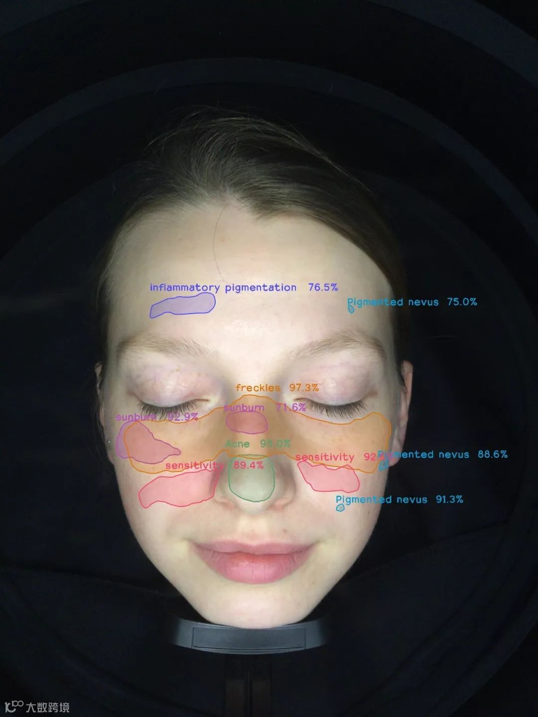 识别面部粉刺分布以及数量,并通过日光图、伍氏图进行具象化体现