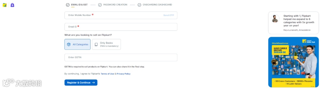 - 访问Flipkart官网,点击“Sell on Flipkart”按钮。