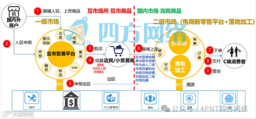 借助4PNT四方网络系统,可实现互联网+边民互市贸易创新模式,通过一二级市场联动、云仓管理、跨境结算体系等功能,提供交易、监管和物流一体化服务[5]。