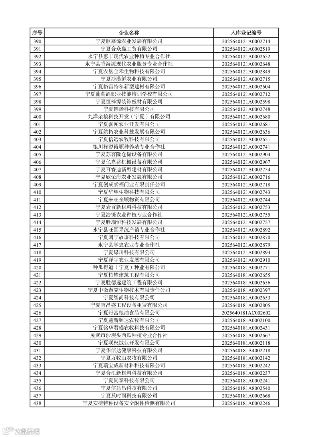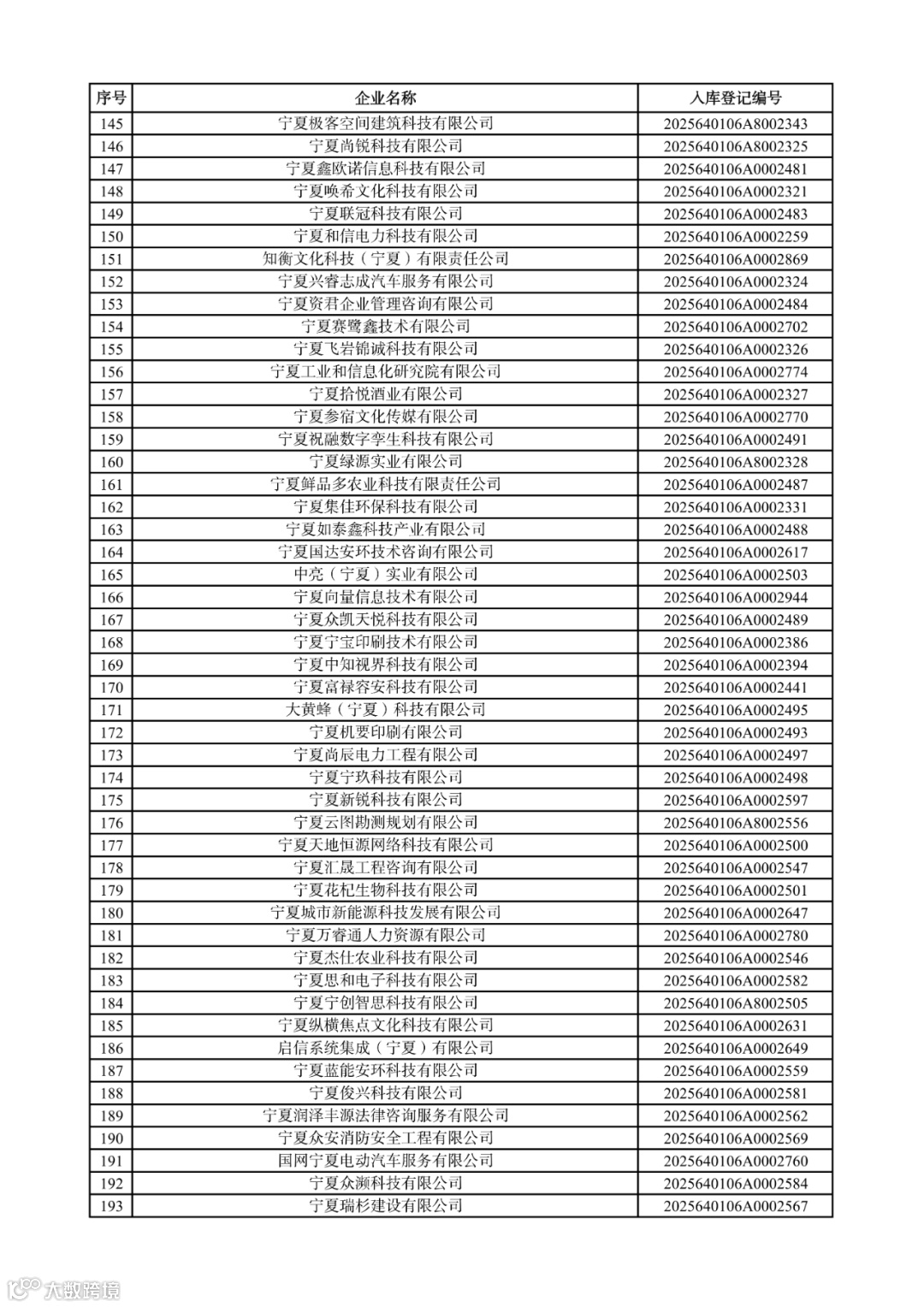 附件:宁夏回族自治区2025年第三批入库科技型中小企业名单