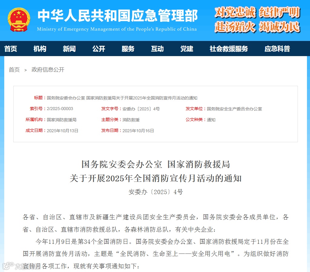 关于开展2025年全国消防宣传月活动的通知