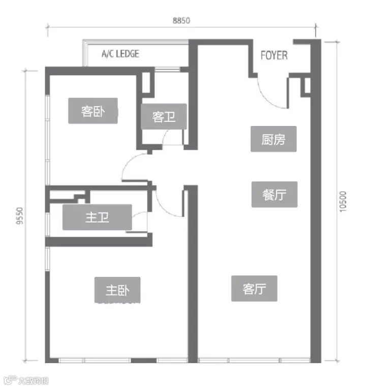 约987sq.ft | 92㎡ | 二室二厅二卫