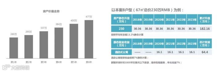 6年累计价格涨幅79%,资产升值182万 + 交房后4年租赁收益27.8%超64万,累计收益246万,年均收益17.8%!