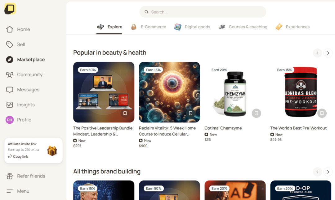 在OfferLab这个平台,从实体产品到导师指导、课程,从低价产品到高价产品都有。亮点是可以与 ClickFunnels、GoHighLevel 这些营销漏斗无缝集成。