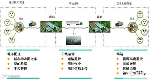 依托高等级公路及沿线设施,以“城际城市配送标准箱”为集装单元,新能源车辆为运载工具,物流分拨园区和场站为节点,智能化信息系统为支撑,打造资源节约、环境友好的一体化开放式物流服务平台[k]。