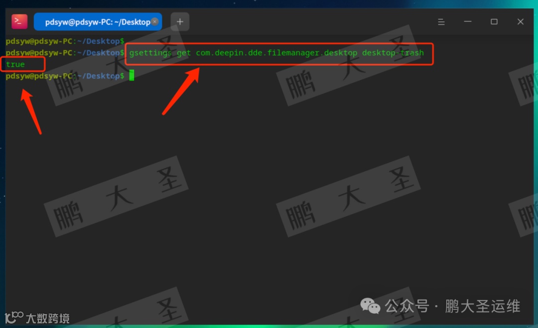 pdsyw@pdsyw-PC:~/Desktop$ gsettings get com.deepin.dde.filemanager.desktop desktop-trashtruepdsyw@pdsyw-PC:~/Desktop$
