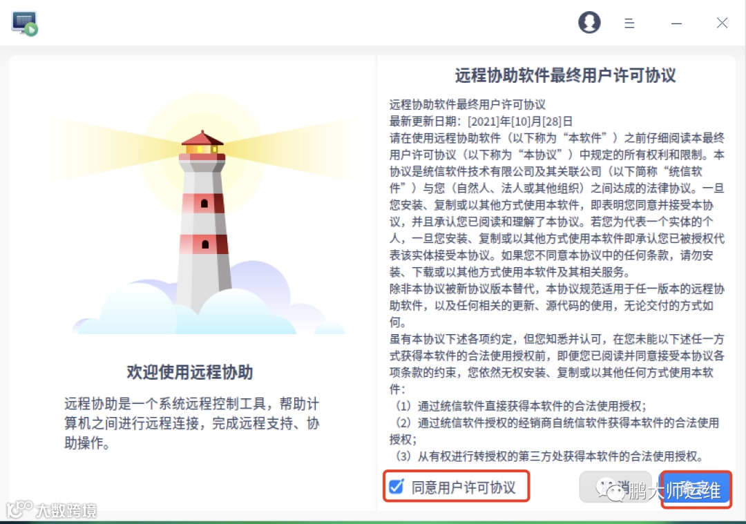 2. 首次使用需同意用户许可协议[k]。