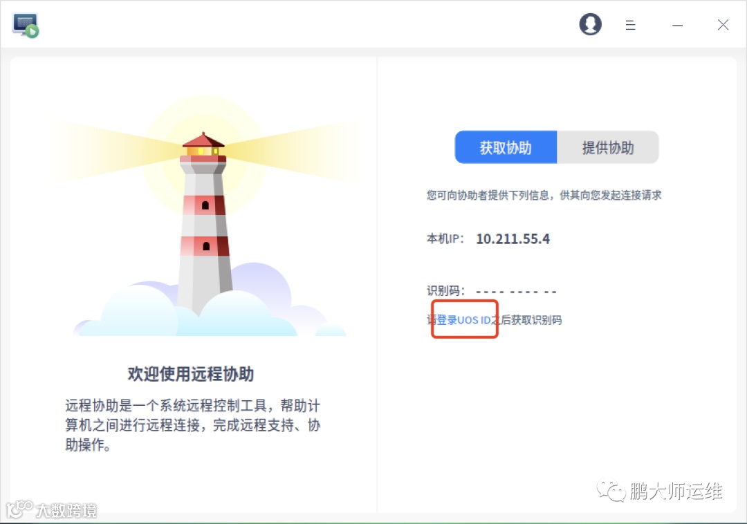 3. 若主机可联网,登录UOS ID后获取识别码[k]。