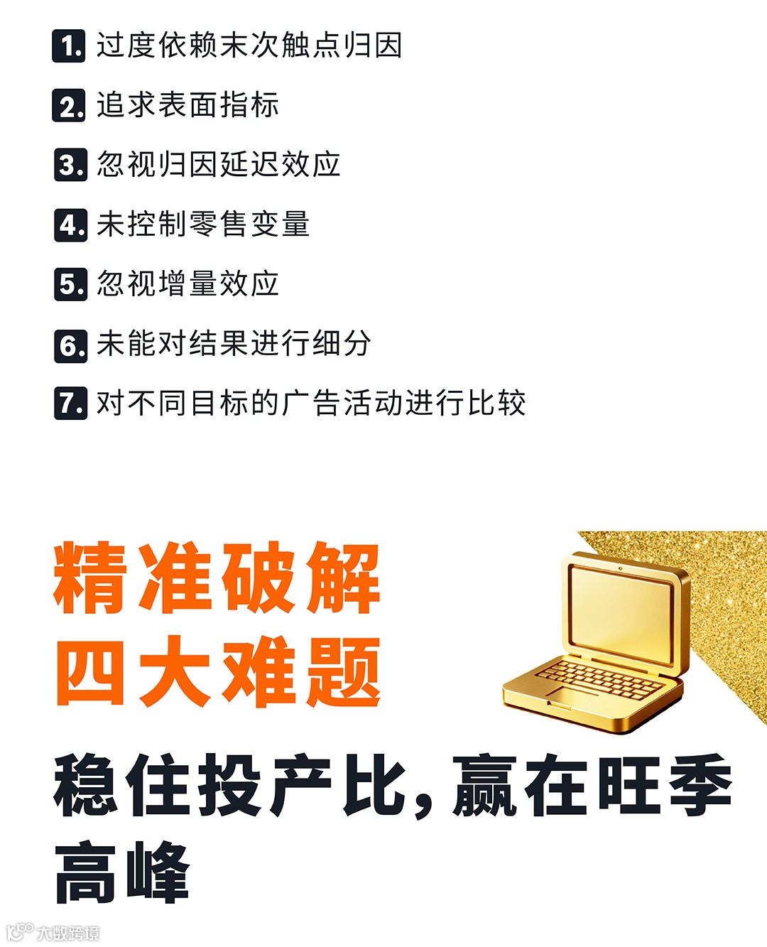 活动后,深度复盘,沉淀经验指导未来。 除了关注总销售额与ROAS等表面数据,文章强调应深入分析广告对整体业务的增量影响,并警示了过度依赖末次触点归因、忽视归因延迟等七大效果衡量陷阱,引导卖家进行有价值的复盘,为下一阶段的广告策略提供坚实决策依据。