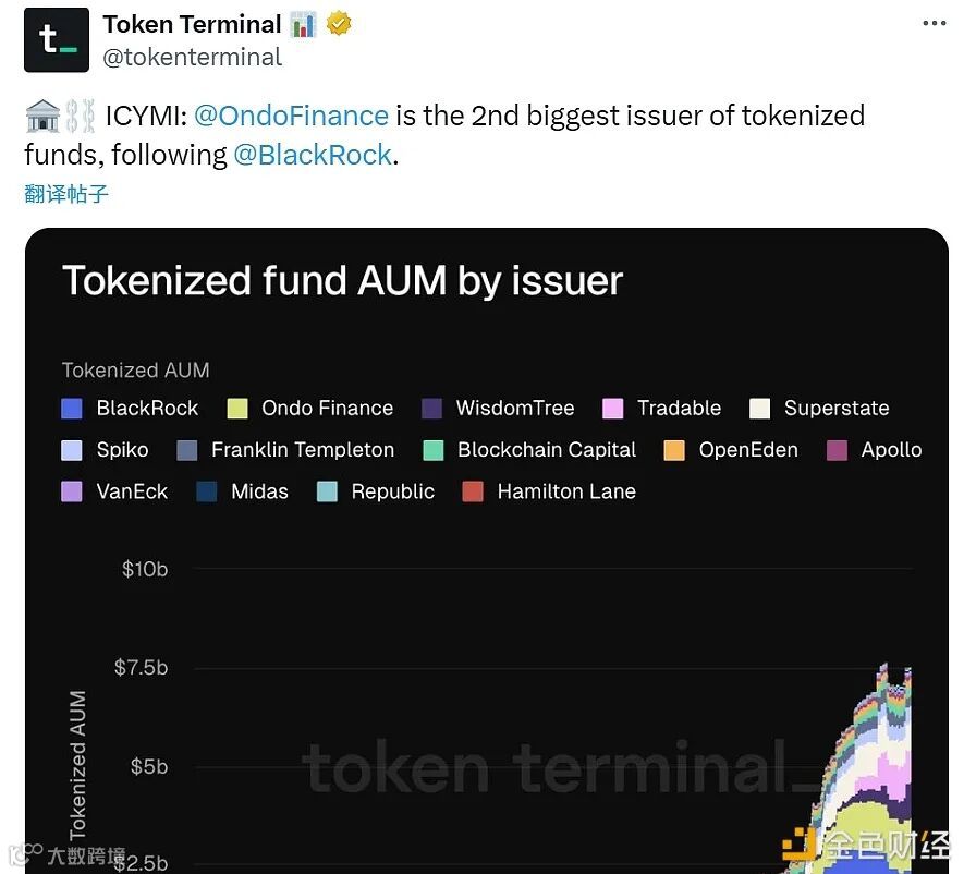 Ondo Finance成为代币化基金第二大发行方,仅次于贝莱德