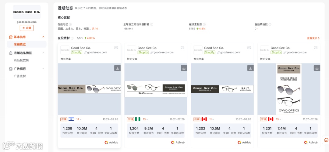 GoodsFox 数据显示,扎根威尼斯海滩35年的眼镜品牌 Good See Co. 正通过 AdMob 平台发起全球化数字营销攻势。该品牌以46美元均价提供超7万款设计师太阳镜及光学镜架,近7天广告素材投放量超 5000 组,覆盖美、加、日、韩等14个主力消费市场。其庞大的SKU体系涵盖 Gucci、Ray-Ban 等轻奢品牌平替款,精准锁定追求高性价比时尚配饰的年轻群体。当前正值北半球夏季消费旺季,品牌通过移动端程序化广告精准触达户外运动爱好者及度假人群,配合"经典款永不过时"的营销主张,在 TikTok 等社交平台已形成 #VeniceBeachStyle 话题传播。