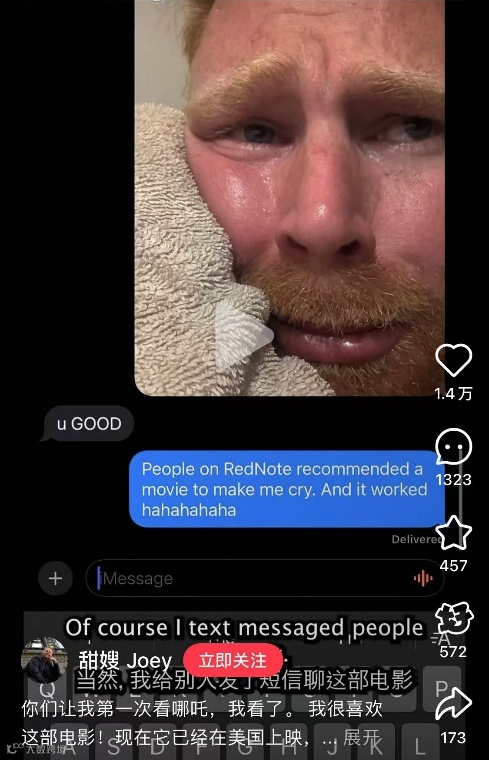 首批观影结束的外国影迷也迫不及待地在社媒平台上分享观影感受,剧情、特效均可谓好评如潮。有外国网友在观影后,发视频称自己“很喜欢这部电影”,被剧情打动,“哭得像个宝宝一样”。