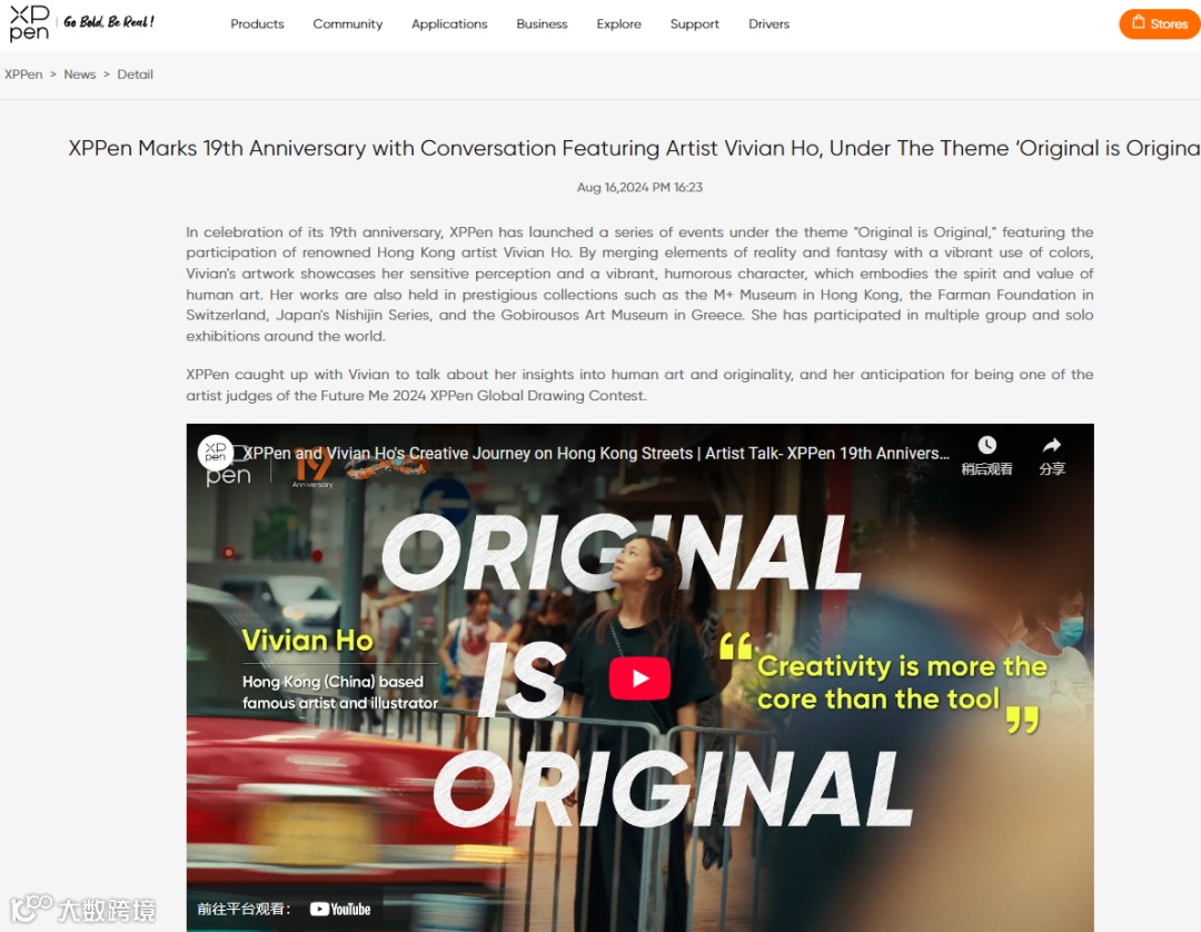 为庆祝品牌成立19周年,XP-pen推出“original is original”主题活动。通过专访香港艺术家Vivian Ho、3D艺术大师Clinton Jones等人,进一步提升品牌知名度的同时,表达了品牌对艺术行业的支持。