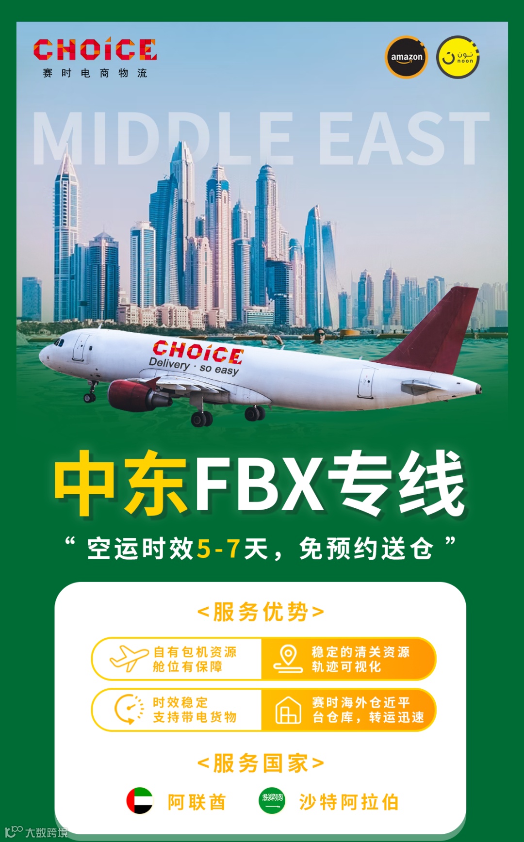 赛时28年专注中东和非洲市场,拥有众多航司舱位资源,并与亚马逊、noon、Temu等平台达成深度合作。对于不少急于补货的卖家来说,时效稳定、安全高效的空派是更好的选择。