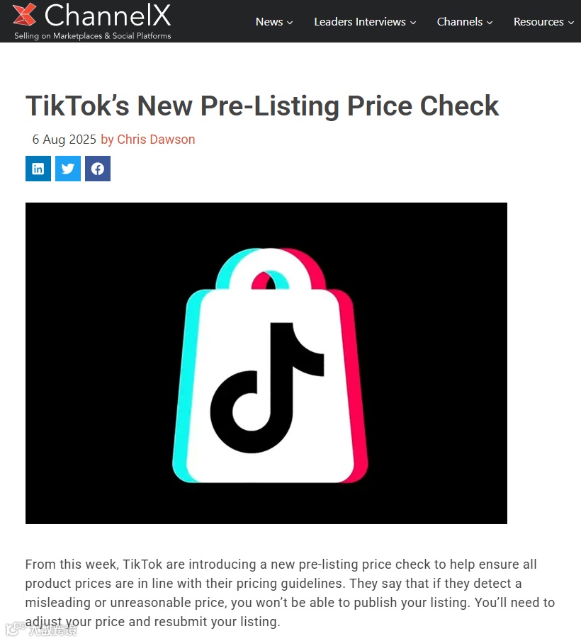8月7日,TikTok发布商品"价格预审"新规!新规要求,所有商品在正式上架前,都必须先通过TikTok系统的自动价格审核,这项新规将直接影响每位卖家的商品上架。