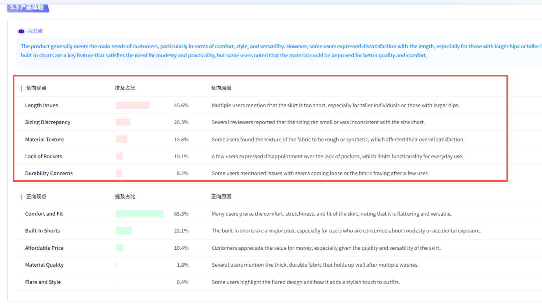 更有价值的是了解该产品主要的负面评价,帮助你进一步改善,提高产品竞争力~