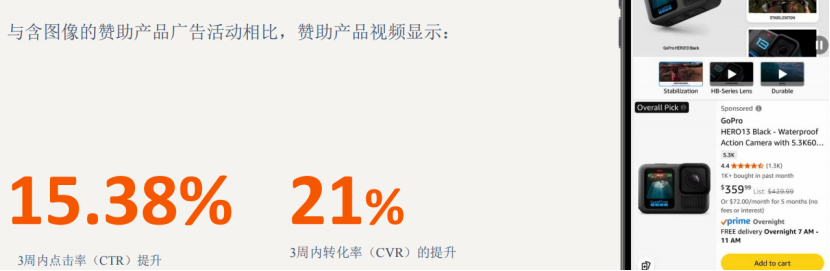 亚马逊SP广告是第一次出现视频广告,按照官方的数据,点击率和转化率都是比那些平平无奇的SP广告不知好多少倍!