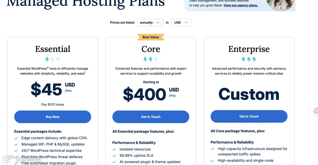 我们建议: 如果你的网站是大型企业站、高流量电商站,或者你追求极致的性能和无需操心的技术维护,我们提供 WP Engine 这样专业的服务