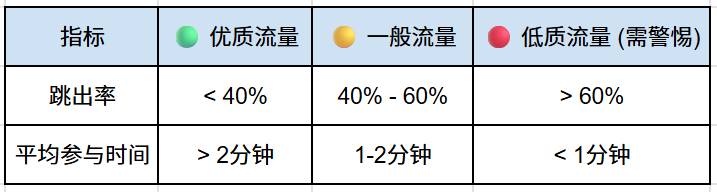 🔥 Tan's 流量质量“红绿灯”判断法 (B2B参考标准):