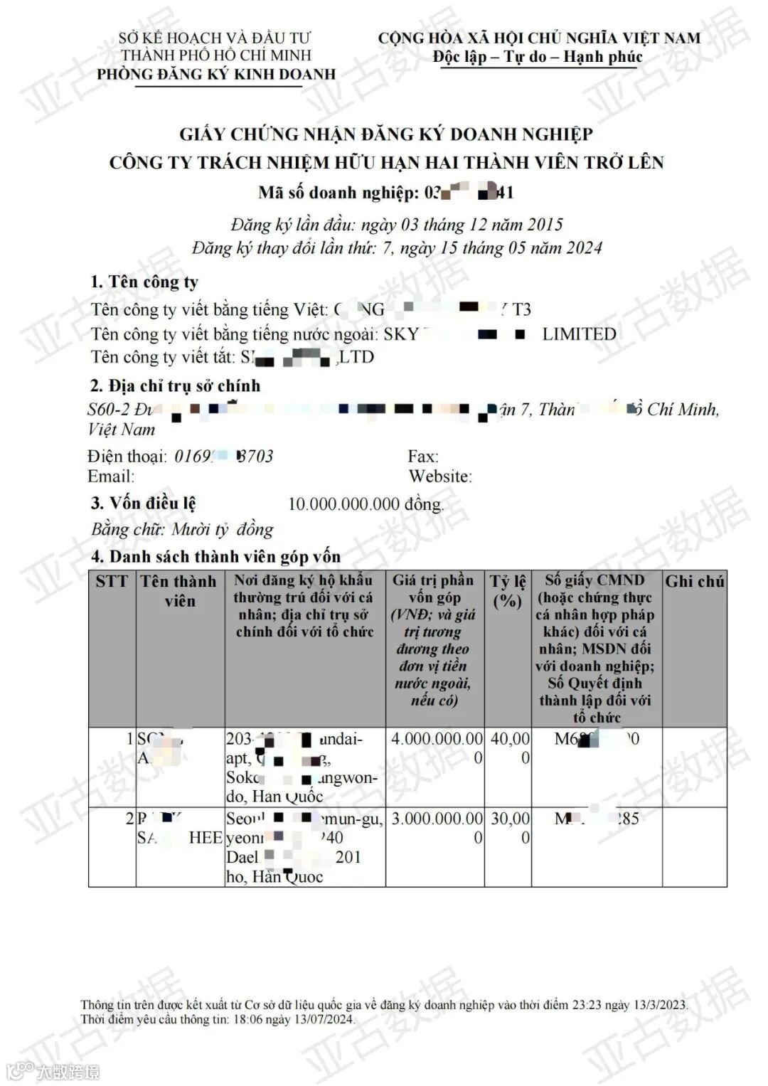 (Charter Capital):显示公司财务实力的直接指标,对于债权人和潜在投资者意义重大。 - 股东信息