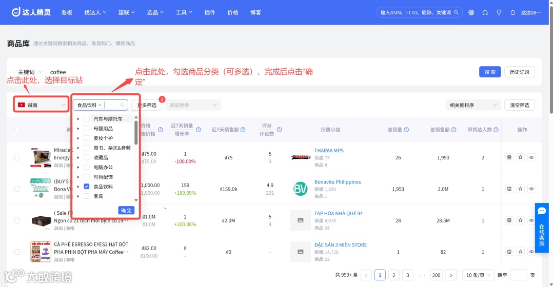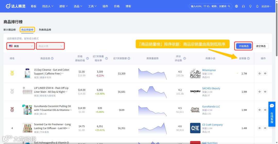 达人精灵网页端「TikTok选品-商品销量榜」操作指引