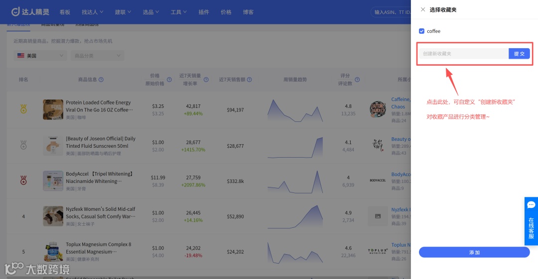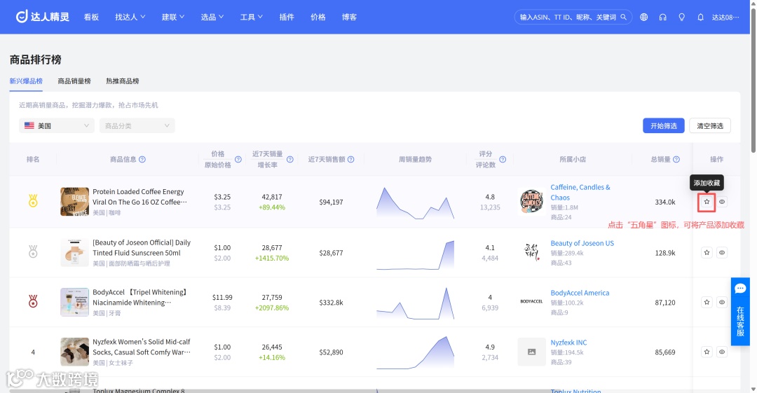 达人精灵网页端「TikTok选品-添加收藏」操作指引-2