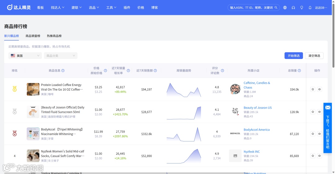 现在,就打开达人精灵,从你最熟悉的品类开始,完成你的精准选品探索吧!