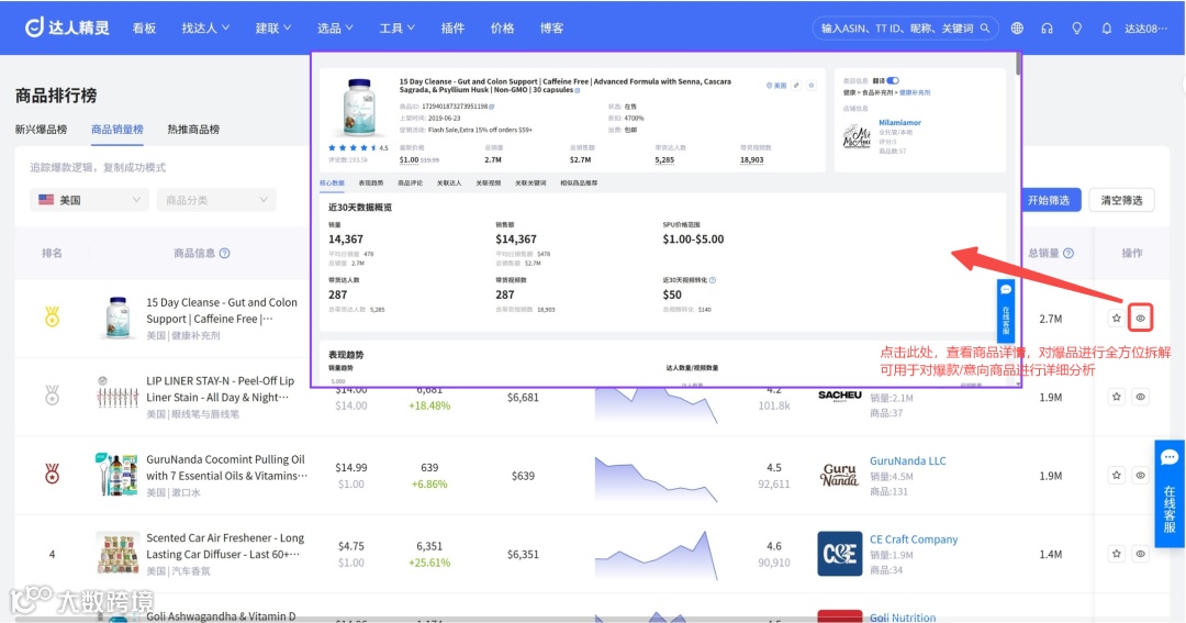 达人精灵网页端「TikTok选品-查看详情」操作指引-2