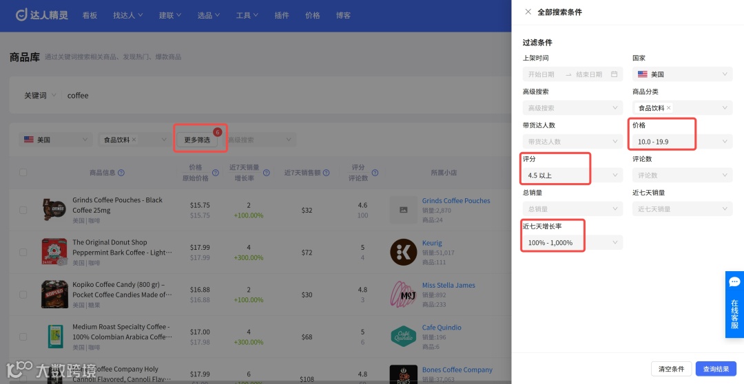 关键词搜索:通过关键词与多维度筛选,你可以精准挖掘细分市场机会