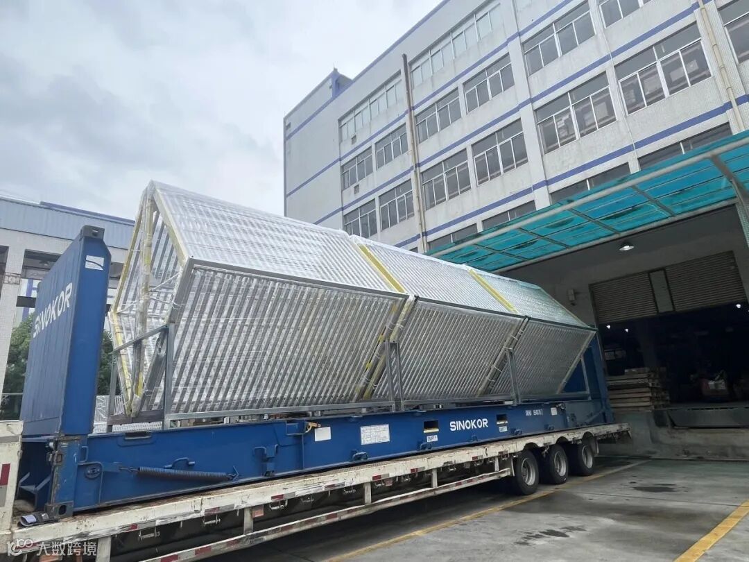 本次运输的货物,正是用于大楼外立面的三角形金属装饰框架。这些构件属于定制化建筑部件,尺寸不规则、结构特殊,对运输稳定性与装载方式都有极高要求。
