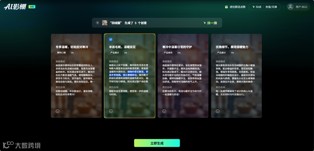免费领取每日生成点数; -