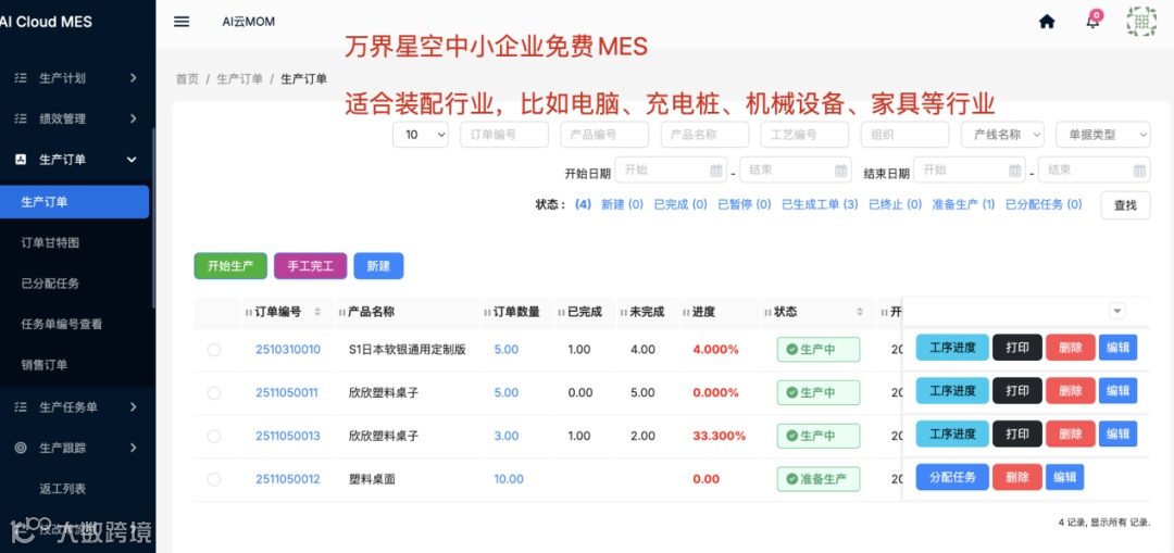 在制品状态监控: 实时跟踪每个工单在每一道工序的进度、投入/产出数量、状态(如等待、加工中、中断、完成),形成完整的生产进度看板。