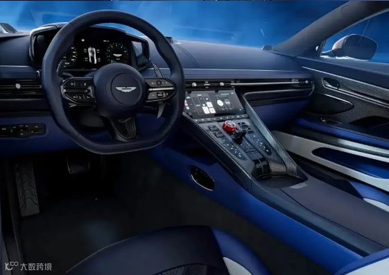 新车的内饰基本与普通版DB12保持一致,仅对部分细节进行了调整。新车应用了三幅式方向盘,白蓝黑三拼色内饰与外观呼应,座椅上有蓝色的“S”徽标刺绣。空调出风口下方的内嵌式中控屏幕可以调节空调,再往下是换挡拨杆及大量的物理按键,包含驾驶模式选择、座椅加热等功能。新车配备宝华韦健的音响系统,保障音乐质感。