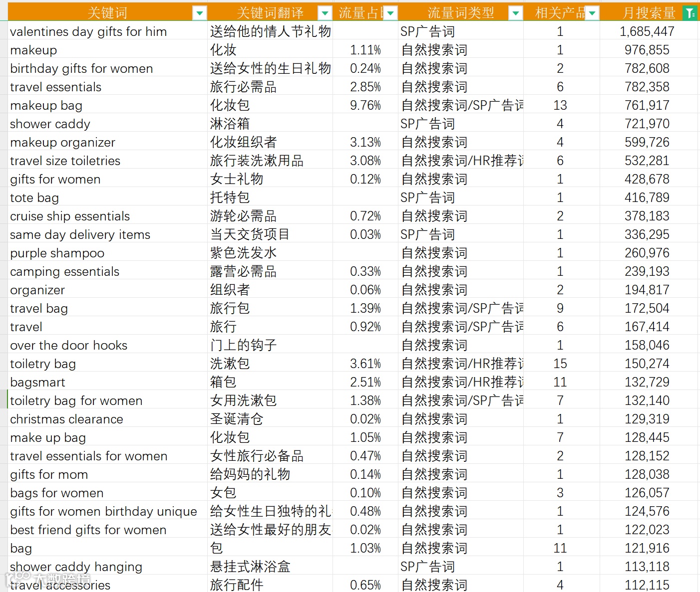 打开卖家精灵【拓展流量词】功能,输入竞品ASIN,一键抓取其自然流量词、广告词等搜索流量词,连亚马逊ABA数据都给你挖透!