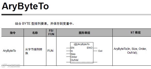 2)AryByteTo可以把字 BYTE 的数组变量,转换成任意数据类型的变量, 配合ToAryByte 可以实现任意类型数据转换。