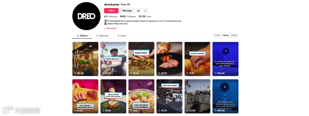 DREO也看准了这点,把海外社交媒体当成品牌的主战场,重点深耕YouTube、TikTok等主流社媒。
