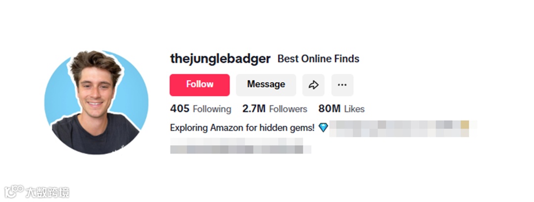 例如TikTok生活类达人@thejunglebadger,他是一位专注于挖掘Amazon隐藏好物的博主,内容以“发现、测评、种草”小众实用产品为主,他的视频输出频率高、互动稳定,受众主要是喜欢网购、爱找新奇实用产品的消费者。