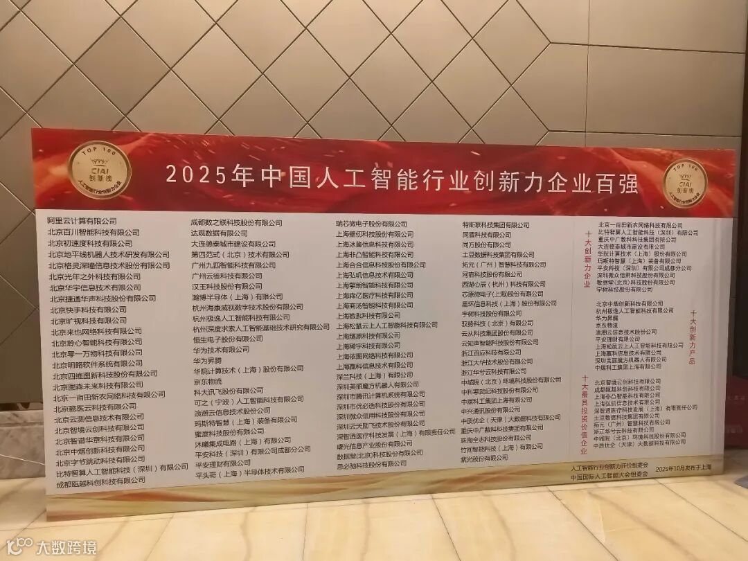 10月28日上午在大会现场举行的“2025年中国人工智能行业创新力企业评选”颁奖典礼,现场发布了2025年中国人工智能行业创新力企业百强榜单,并颁发2025年中国人工智能行业“十大创新力企业”、2025年中国人工智能行业“十大创新力产品”、2025年中国人工智能行业“十大最具投资价值企业” 等多个重要奖项。