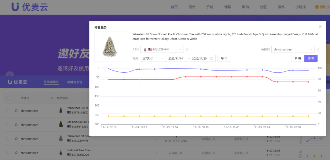 我没说话,直接让他把那个卖得最好的“圣诞树”ASIN输进去。