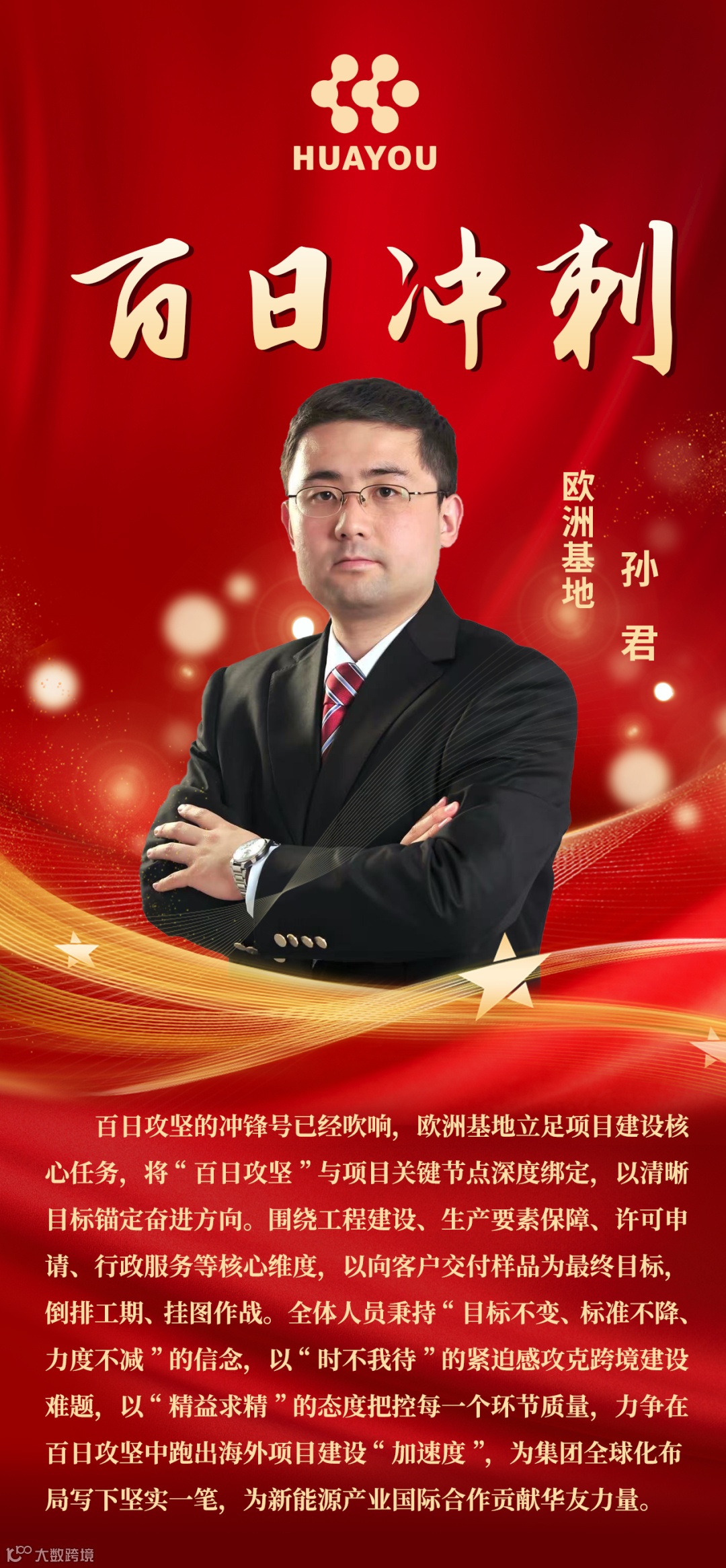 在华友高质量发展的壮阔征程上,目标任务是清晰的坐标,是我们必须抵达的彼岸;是庄严的承诺,是我们必须践行的使命。面对百日攻坚决战,我们没有丝毫的犹豫和退缩的余地,唯有坚定信念、勇往直前,动员起来、紧张起来、行动起来,狠抓工作落实,把速度转化为效能,把宏伟蓝图细化为“施工图”和“实景图”,打好打赢“百日攻坚战”,以优异的答卷为推动华友高质量发展贡献新能源力量。