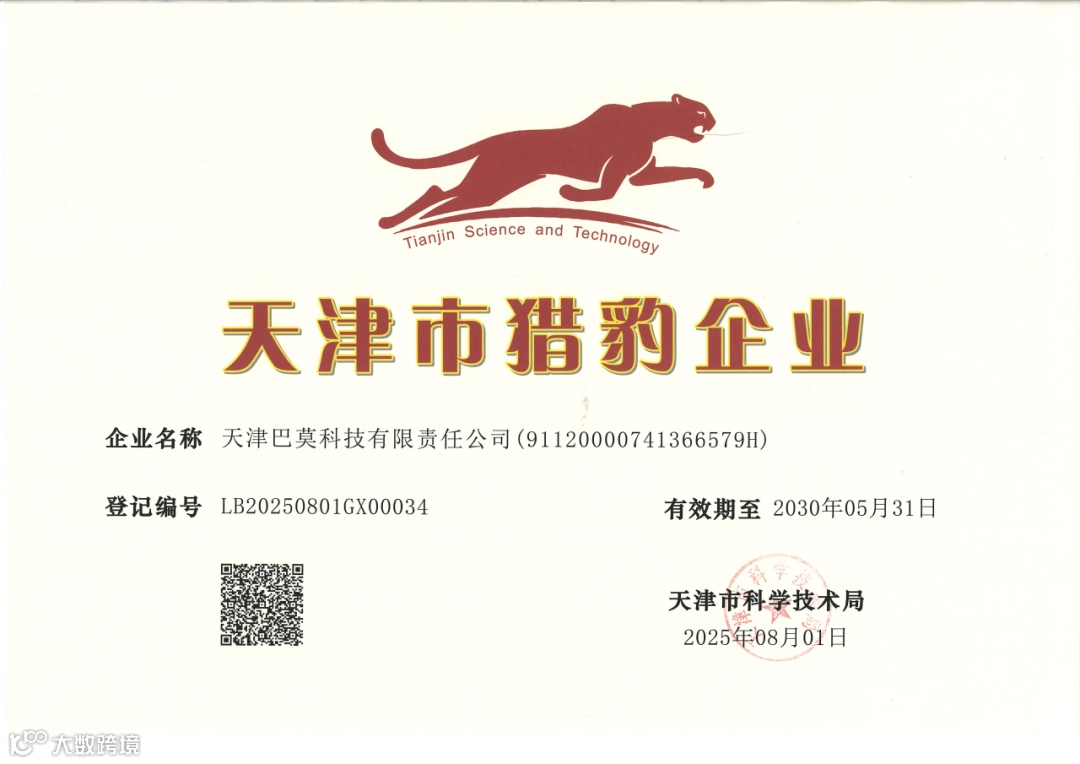 据了解,天津市“猎豹企业”是今年天津市首次开展认定,通过对科技型企业经营规模、科技研发、人才引育等创新要素的综合评价,遴选出创新能力突出、规模实力强的企业,进一步引领科技型企业做优做大做强,推进产业高质量发展。此次获评天津市首批“猎豹企业”,标志着公司在科技创新能力、研发投入强度、科技人才储备以及企业规模实力等方面再次获得了社会各界的高度肯定与认可。