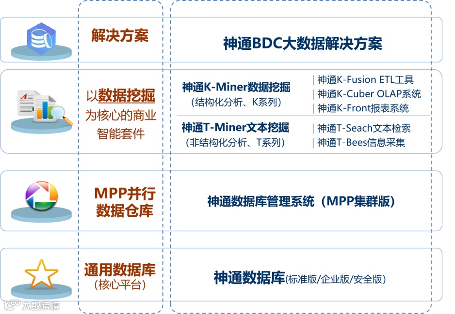 天津神舟通用数据技术有限公司(以下简称神舟通用公司)成立于2008年,隶属于中国航天科技集团(CASC),是一家从事数据库、大数据解决方案和数据挖掘分析产品研发的高新技术企业,获得了国家核高基科技重大专项重点支持,是核高基专项的牵头承担单位。