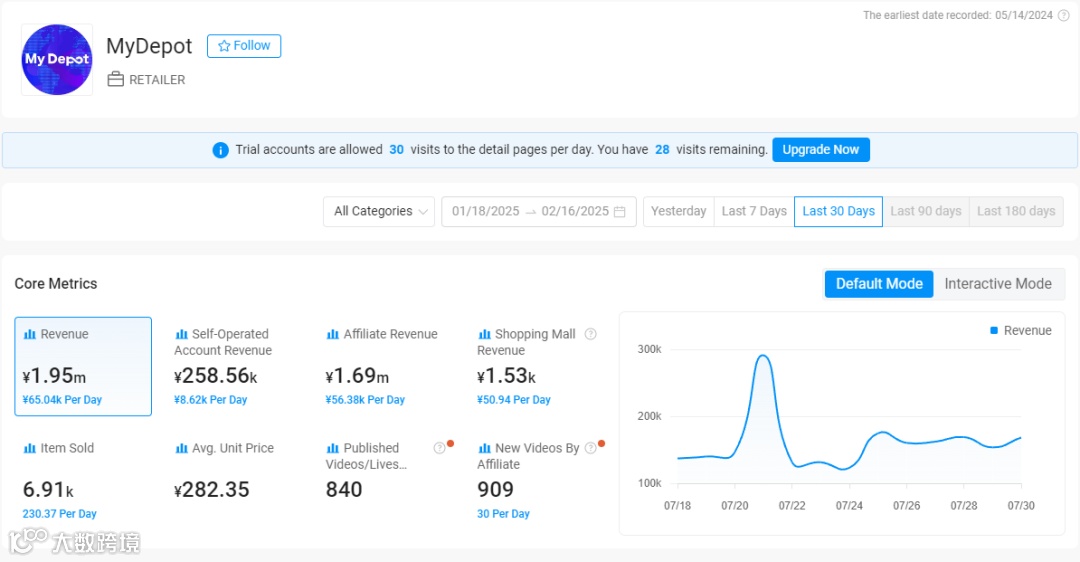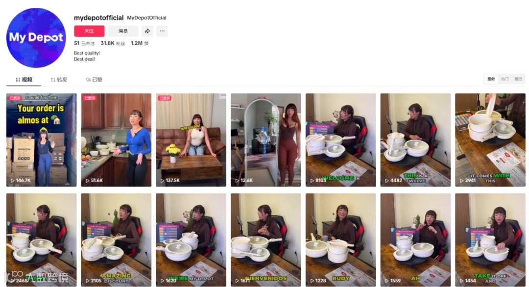MyDepot是一家专注跨境的线上家具电子商务平台,自去年5月份上线TikTok以来吸引了大量关注,销量呈现爆发式增长。一度位居家具类月度销量榜首,全品类排行榜前三。网络数据显示近一个月以来,其店铺销售额接近200万人民币。