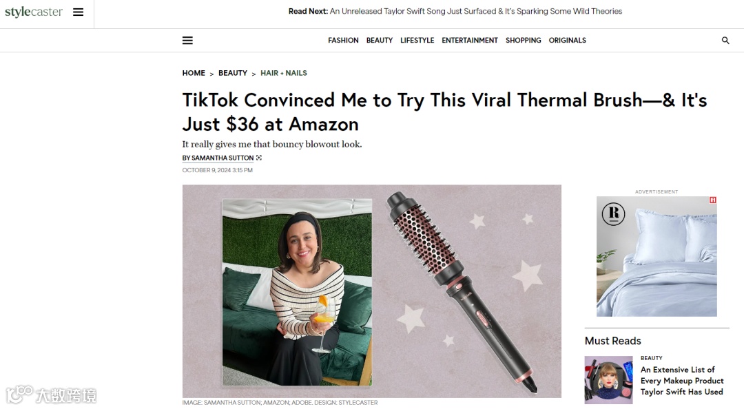 此外,TikTok带来的巨大流量不断外溢。女性时尚网上stylecaster的编辑受社媒热潮影响,于2024年10月上线测评内容。经过试用,稿件结论为该款产品确实是40美元价位段独一无二的选择。