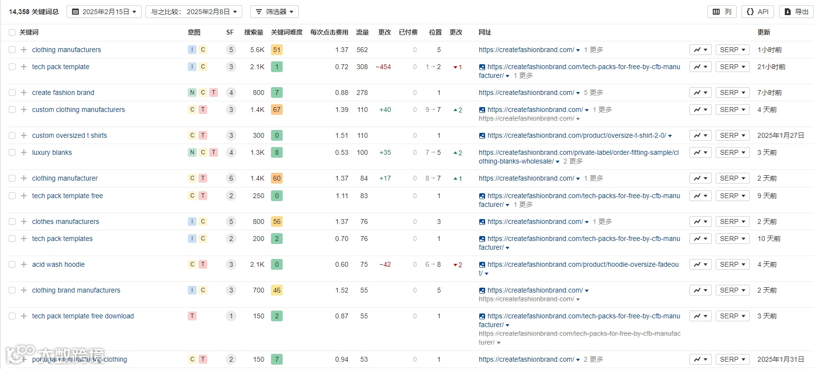 关键词:根据ahrefs分析显示,Create Fashion Brand所布局的关键词,基本上可以分为四大类,分别是服装制造商类关键词、技术包类关键词、地区性制造商关键词以及特定服装产品关键词。