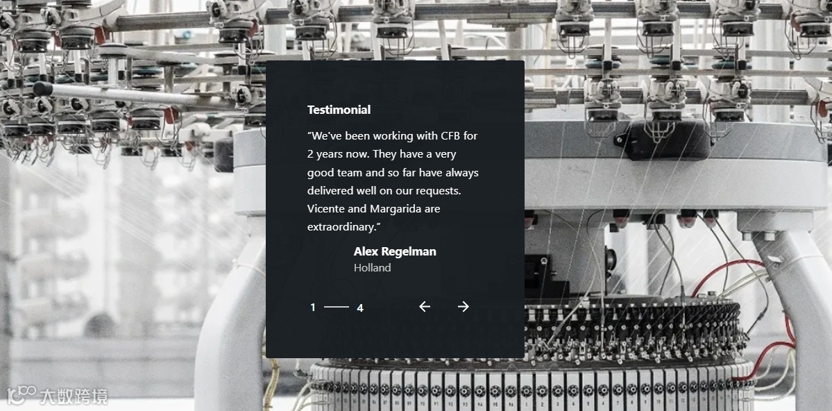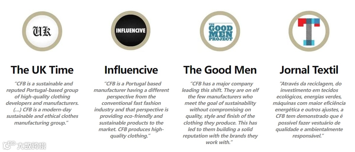 Create Fashion Brand在网站首页展示了来自“The UK Time”“Jornal Textil”等杂志的正面评价,以及客户的真实反馈。这些来自第三方的客观反馈,是能够起到信任背书的作用,进而增强潜在客户对其产品和服务的信心的。