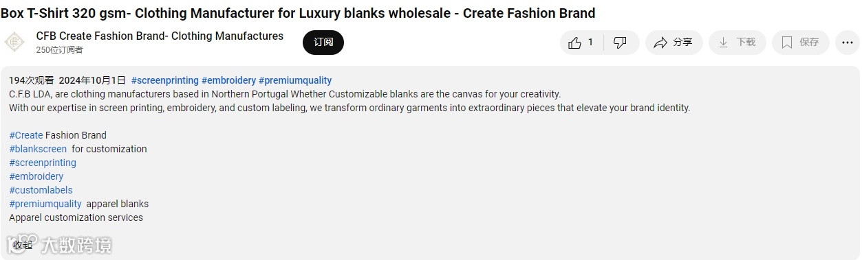 此外,Create Fashion Brand在视频的标题和描述上,也进行了SEO优化布局,比如说,在标题和描述中布局了大量相关关键词,包括“Clothing manufacturers”、“Casual and streetwear for men and women”,这是能够增加其被目标客户搜索到的可能性的。