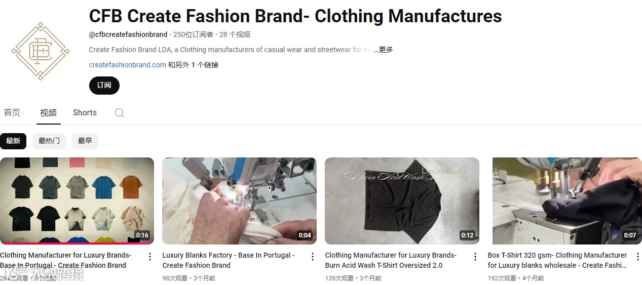 YouTube营销:Create Fashion Brand在YouTube上创建了官方频道,虽然其发布频率并不高,但这对于其树立专业形象,同样是有帮助的。Create Fashion Brand在YouTube上所发布的视频,基本上围绕着生产细节展开。